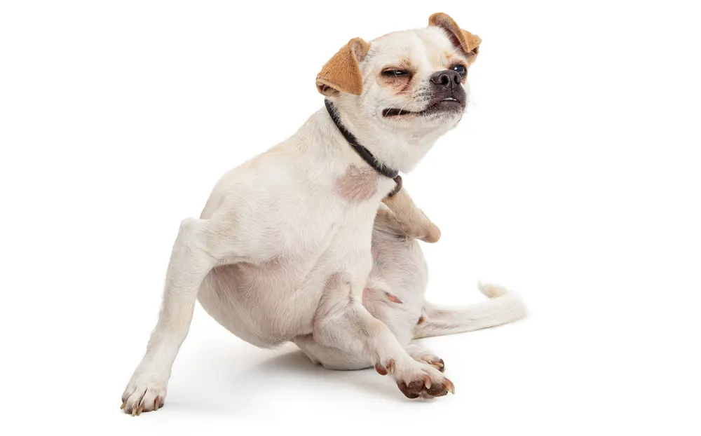 Scratching leads to skin lesions (injuries), which are among the typical symptoms of canine Dermatitis.